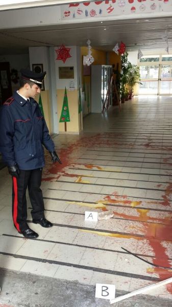 Nella scuola “Da Fiore”, invece, gli stessi dopo aver infranto il vetro della porta sul retro dell’edificio, vista l’impossibilità ad accedere all’interno, avrebbero imbrattato la porta stessa. Nel cortile, i militari hanno rinvenuto un secchio di plastica contenente vernice di colore rosso, utilizzato dai vandali per compiere entrambi i danneggiamenti. A seguito di attenta attività info – investigativa i Carabinieri sono riusciti ad individuare gli autori di entrambi i danneggiamenti e presentatisi presso le loro abitazioni, a seguito di ispezione domiciliare, hanno recuperato gli abiti ancora macchiati dalla stessa vernice utilizzata per danneggiare gli edifici scolastici, successivamente posti sotto sequestro. Dei tre, il 14enne ed il 15enne risultano frequentare la scuola media presa d’assalto. Questo episodio va ad aggiungersi a quello accaduto il 19 febbraio 2013 in cui 8 minori cercarono di appiccare il fuoco alla scuola media “Da Fiore”, teatro anche di quest’ultimo danneggiamento, ed anche in quel caso i Carabinieri riuscirono ad intervenire assicurando alla giustizia i piccoli vandali.