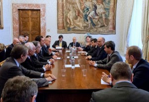Il Presidente del Consiglio, Enrico Letta, ha ricevuto questa mattina a Palazzo Chigi – insieme al Sottosegretario alla Presidenza del Consiglio, Filippo Patroni Griffi, e ai ministri delle Infrastrutture e dei Trasporti, Maurizio Lupi, e dell’Ambiente e del Mare, Andrea Orlando – i sindaci di Gioia Tauro e di San Ferdinando, il presidente della Regione Calabria, il presidente dell’Autorità Portuale di Gioia Tauro, i membri del Comando Generale delle Capitanerie di Porto, l’amministratore delegato di Medcenter Container Terminal e il vicepresidente Terminal Marittimi del Gruppo Contship. Al centro dell’incontro la movimentazione del materiale proveniente dalla Siria nell’ambito delle iniziative della comunità internazionale per la pacificazione e il disarmo bellico nel Paese. Nel corso della riunione sono state ascoltate le ragioni delle istituzioni del territorio che hanno legittimamente rappresentato la preoccupazione delle popolazioni interessate. Una preoccupazione che tuttavia l’esecutivo rispetta ma considera non rispondente alla realtà oggettiva dei fatti e parzialmente frutto di una non esaustiva comunicazione. Per evitare ogni ulteriore allarmismo ingiustificato sarà, dunque, cura del governo predisporre iniziative puntuali di informazione, a partite dalla redazione di un opuscolo contenente tutte le notizie necessarie che verrà distribuito alle popolazioni. Più nello specifico, il governo ha chiarito che la questione attiene alla movimentazione di materiale, e non di armi, che viene trattato in via ordinaria dal porto in condizioni di assoluta sicurezza.