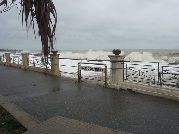 “La forte mareggiata, accompagnata da violente raffiche di vento, che si è verificata nelle giornate dell’1 e 2 febbraio 2014, ha ulteriormente aggravato una situazione, già critica, dovuta alla precedente mareggiata del 19 novembre 2013 – ad affermarlo in una nota inviata alla Regione Calabria e alla Protezione Civile, il sindaco di Cirò Marina Roberto Siciliani. Nella zona a Nord dell’abitato, ormai priva di barriere frangiflutti, il mare si è infiltrato sotto il lungomare e, minacciosamente, si avvicina sempre di più alle abitazioni. Sono stato costretto ad emettere ordinanza di divieto di circolazione nel tratto interessato per pericolo che la strada potesse sprofondare da un momento all’altro.