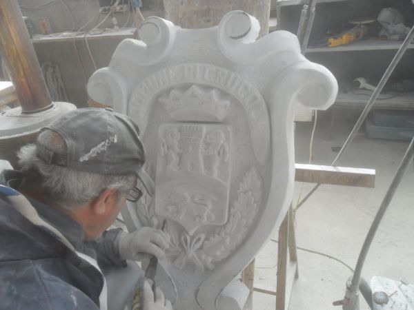 In sostanza lo stemma si compone di elementi grafici atti ad individuare e descrivere una comunità di appartenenza. E’ stato realizzato in marmo bianco, in grado di durare nel tempo senza che vi sia alcuna manutenzione, e che per il suo colore, appunto bianco, è considerato tra le tipologie più pregiate al mondo. L’iniziativa, si legge in un comunicato stampa, vuole essere anche, da parte dell’Amministrazione Comunale, “un grande riconoscimento al nostro talento locale, Antonio Cersosimo, che con le sue opere, le sue sculture, presenti in Italia ed in tutto il mondo, rappresenta la positività del nostro territorio.” Il costo finale della scultura, pari a 8.030,00, è stato ricavato dal quadro economico rimodulato a seguito della gara d’appalto per i Lavori di riqualificazione urbana nel capoluogo Crucoli, che prevedeva un finanziamento regionale di € 150.000,00.