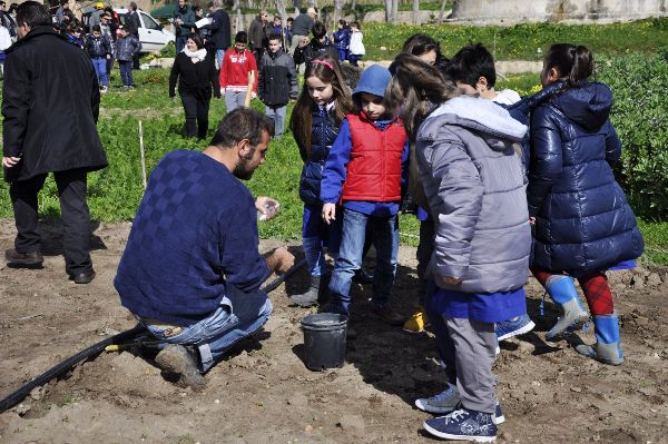 Quasi novanta giovanissimi “contadini” si sono ritrovati in località Cepa, ad Isola Capo Rizzuto, sui terreni confiscati alla ‘ndrangheta, per gettare le basi di quello che si appresta a diventare “L’orto sociale della biodiversità”. Divisi in gruppi e seguiti dai volontari, hanno zappettato, scavato i solchi, piantato, seminato e poi ricoperto i semi col rastrello; soprattutto, si sono divertiti moltissimo, prendendo contatto concreto con la terra e animando i piccoli appezzamenti di terreno che costituiranno il patchwork che formerà l’orto. Il progetto è finanziato con i fondi Otto per mille della Chiesa Valdese, ideato da Legambiente Calabria, dal circolo Ibis di Legambiente Crotone, dal coordinamento provinciale di Libera, ed è in via di realizzazione grazie alla partnership tra la Cooperativa sociale Terre Joniche-Libera Terra, l’Istituto comprensivo Gioacchino da Fiore, l’Istituto comprensivo Karol Wojtyla ed il Comune di Isola di Capo Rizzuto. Vi sono coinvolte quattro classi dei due istituti comprensivi: per la Gioacchino da Fiore la 3 C della scuola elementare (referente l’insegnante Antonietta Bove) e la 2 A della scuola media di Le Castella (referente Francesca Pellegrino); per la Karol Wojtyla la 4 B della scuola elementare (referente Laura Pappalardo) e la 2 A della scuola media (referente Paolo Messina). Consiste nella realizzazione di un orto che sarà composto da tanti rettangoli di terreno all’interno dei quali saranno seminate e piantate le diverse varietà orticole e seminative di stagione. Un altro appezzamento di terra, invece, sarà dedicato alle piante officinali. “L’orto – ha spiegato il presidente del circolo Ibis Francesca Travierso – quotidianamente sarà seguito dai volontari, ma più in generale sarà oggetto di un percorso pensato per gli studenti; alcuni momenti saranno dedicati alla formazione in aula, per spiegare l’agricoltura biologica, il consumo a chilometro zero, l’importanza di seguire il ciclo naturale delle stagioni e quella di preservare la biodiversità delle colture. Nelle loro visite in località Cepa, invece, gli studenti potranno essere protagonisti di tutto il ciclo produttivo dell’orto, dalla semina fino alla raccolta. Il progetto terminerà a ottobre del 2014”. “In questa bellissima giornata – ha aggiunto il presidente di Legambiente Calabria Franco Falcone – i bambini si riappropriano di questo terreno confiscato alla ‘ndrangheta. È un segnale importante, che esorta all’impegno, e chiama a raccolta tutta la parte buona della Calabria”.