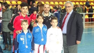 Abbiamo poi ascoltato dai diretti protagonisti le loro impressioni ed i propri commenti su quest’ultima, entusiasmante, avventura in quel di Rossano. “La sera prima della gara – ci dice Natale – ero un po’ agitato perché è stata la mia prima esperienza agonistica. La mattina, giungendo al palazzetto mi è venuta un po’ di paura perché non sapevo come funzionasse. Appena ho visto tutte quelle persone ho avuto persino panico, ma quando sono salito sul tatami ho pensato solo a combattere e così ho vinto il mio primo avversario 9-8. Al secondo combattimento ero un po’ più calmo ed ho vinto per 9 a 6. Quando ho capito di aver conquistato il primo posto ho pianto per l’emozione e nel ricevere la medaglia d’oro ero felice per aver raggiunto il mio primo traguardo e per aver reso onore al mio maestro.” “Arrivato il giorno della gara, – prosegue Luana – vedendo tutte quelle persone sugli spalti ero molto emozionata e al tempo stesso avevo molta paura ma non vedevo l’ora di conoscere le mie avversarie e confrontarmi con loro. Una volta salita sul tatami, tutta la mia ansia è svanita ma ha preso il sopravvento la paura. Il primo combattimento è stato facile ma molto emozionante e ho vinto 12 a 1. Nel secondo ho avuto un po’ più di difficoltà ma puntando sulla mia elasticità, sono riuscita di nuovo a vincere 18 a 1 classificandomi così al 1° posto. Quando sono salita sul podio ero molto emozionata e ho capito che tutti i sacrifici fatti in palestra erano serviti.” “La sera prima della gara ero molto felice perché non vedevo l’ora di combattere, – dice Denis – ma quando ho visto il palazzetto mi sono vergognato un po’ perché dovevo combattere davanti a tutte quelle persone, ma ero pronto e per niente emozionato. Volevo subito entrare, combattere e confrontarmi con i miei avversari ma ho dovuto attendere molto. Così, arrivato il mio turno ero carico e una volta entrato sul tatami ho mostrato tutta la mia grinta. Il mio avversario mi ha battuto 6 a 5, ma nonostante questo sono molto fiero di come ho combattuto anche se so che devo migliorare ancora molto. Questa è stata la mia seconda gara di Taekwondo e ho portato a casa il 2° posto.” “Dopo oltre 13 anni di attività – è la chiusa di Giuseppe Romeo – ho maturato che i risultati fanno piacere e portano lustro e soddisfazione al nome della palestra ed ai tanti sacrifici che facciamo durante le lezioni, ma la mia gioia più grande è vedere i “miei ragazzi” che vivono le gare con gioia e giusta tensione agonistica. Per loro deve iniziare tutto come un gioco, il talento è già dentro di loro nel seguire le lezioni, nel portare avanti un percorso e nell’uscire dalla ruotine quotidiana della noia. Non esagero nel dire che amo sempre di più le arti marziali ed amo sempre di più i miei ragazzi.” Poi l’istruttore torrettano ha un pensiero di ringraziamento per i propri assistenti, primo fra tutti Salvatore Coppola, “che con impegno ha seguito i ragazzi in una lunga preparazione e le vittorie sono anche merito suo”, ma anche a Elisabetta Falzetta, Bianca Ciocoiu, Cataldo Sestito e Francesco Celsi: “La nostra non è una palestra, ma una seconda famiglia!”