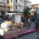 Carnevale a Strongoli (6)Successo di pubblico per la performance che ha aperto la rassegna di Carnevale a Marina di Strongoli. Un evento che ha visto protagonisti giovani e meno giovani impegnati con giganteschi carri allegorici nella sfilata del capoluogo turistico. Il percorso si è snodato inizialmente da Viale Nave Petrarca, percorrendo Viale Macaone fino ad arrivare in Piazza Magna Grecia dove ad attendere il corteo c’erano i protagonisti con coriandoli, caramelle e tanta musica. La manifestazione è stata ideata da Resisti Strongoli in collaborazione con la Pro-loco di Strongoli che ha accolto l’invito dei volontari del gruppo sociale di cittadini impegnati nel territorio. Le vie di Marina di Strongoli si sono colorate in festa con i sei carri allegorici che sono stati allestiti in meno di 15 giorni dai volontari di Resisti Strongoli, e della Pro-Loco al lavoro nei ritagli di tempo libero. La sfilata dei carri è stata realizzata a costo zero e grazie alla sensibilità di numerose aziende del territorio che hanno offerto il materiale per allestire le macchine del divertimento (cartoni, nastri adesivi, caramelle, doni, colori, compensati, ferro, etc..).
