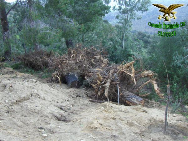 Sempre all’interno del rimboschimento, veniva rilevata una buca scavata con mezzo meccanico nel cui interno era stato depositato un quantitativo di circa 1,5 mc. di lastre di eternit. La buca, realizzata per il tombamento dei rifiuti speciali, non era stata ancora coperta di terra poiché sicuramente doveva ospitare altro materiale dello stesso genere ancora presente nelle vicinanze, posto a contenimento del terreno a monte della costruenda opera edilizia sottoposta a sequestro. Non bastavano questi abusi che, in un’altra area attigua di terreno saldo-boscato, veniva accertata anche la realizzazione di un piazzale in terra battuta di circa 100 mq, probabilmente, finalizzato all’ottenimento di un’area di sedime di un manufatto edilizio. Gli agenti, espletate le prime indagini, sono risaliti da subito al responsabile, pensionato di 69anni di Casabona (KR), che trovato senza le necessarie autorizzazioni per i lavori eseguiti è stato denunciato all’Autorità Giudiziaria per tutti gli abusi commessi, oltre che dovrà pagare una cospicua sanzione amministrativa. Gli illeciti accertati ricadono in un area di proprietà del comune di Casabona sottoposta a vincolo idrogeologico e paesaggistico. E’ rappresentata da terreni agricoli che si alternano a formazioni boschive naturali ed artificiali ed a terreni incolti, che il trasgressore deteneva in fitto. Gli enti preposti per legge (regione, comune e provincia), per i rispettivi aspetti di competenza, sono stati informati di tali violazioni affinché si attivino per il ripristino dello stato dei luoghi, i cui costi sostenuti verranno in seguito addebitati al trasgressore denunciato dalla forestale.