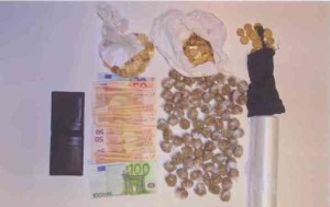 Materiale sequestratoAlle ore 13.00 di ieri, nel corso di una attività di bonifica all’interno del C.D.A./C.A.R.A. “S. Anna” di Isola Capo Rizzuto, più in particolare durante i controlli all’interno dei moduli abitativi occupati dai migranti, veniva identificato e controllato il cittadino extracomunitario Jabarkhil Iman Nabi, nato in Afghanistan il 01.01.1990, ospite della predetta struttura di accoglienza. Il controllo all’interno del modulo occupato dal cittadino afghano sortiva esito positivo in quanto, nell’armadietto metallico contenente i suoi effetti personali, veniva rinvenuta una busta di carta bianca all’interno della quale erano custoditi 76 involucri termosaldati di sostanza stupefacente del tipo Marijuana e tre sacchetti di monete metalliche per l’ammontare di Euro 85,95, nonché un rotolo di sacchetti in plastica del tipo usato per alimenti della stessa fattura della plastica contenente la sostanza stupefacente. La perquisizione, estesa alla persona, consentiva di rinvenire negli slip la ulteriore somma di € 1.135 in contanti. In ragione di quanto sopra il cittadino afgano veniva tratto in arresto perché resosi responsabile del reato di detenzione ai fini di spaccio di sostanza stupefacente del tipo Marijuana. Alle ore 16.30, il P.M. di turno presso la locale Procura della Repubblica, notiziato dell’arresto, disponeva la sottoposizione del soggetto al regime degli arresti domiciliari presso il suindicato Centro di accoglienza, in attesa del rito direttissimo da celebrarsi nella mattinata di domani 2 aprile 2014.