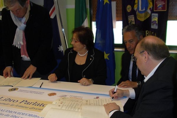 E’ stata sottoscritta nella mattinata di sabato scorso, una convenzione sull’utilizzo del “libro parlato Lions” tra il Comune di Cirò Marina, rappresentato dallo stesso Sindaco, Roberto Siciliani, l’Associazione amici del libro parlato per ciechi d’Italia, Robert Hollman del Lions Club di Verbania e, naturalmente il Lions Club Cirò Krimisa, rappresentato dalla stessa presidente, Enza Alessio Librandi. Il “Libro Parlato Lions” è un servizio totalmente gratuito che da oltre trent’anni viene messo a disposizione di tutti i disabili visivi per mezzo di una “Audiobiblioteca” interamente costituita da libri registrati da “viva voce”. Un “service” della tradizione dei Lions, del quale possono essere quindi utenti tutti coloro che non possono leggere autonomamente: ciechi, ipovedenti, persone anziane con difficoltà di lettura, disabili fisici e psichici, pazienti ospedalizzati, dislessici. Il Libro Parlato Lions, come è stato spiegato durante la cerimonia svoltasi nella sala del progetto lettura della Biblioteca Comunale, è nato nel 1975 per iniziativa del “Lions Club Verbania” con la denominazione di ‘Servizio del Libro Parlato per i ciechi d’Italia “Robert Hollman” del Lions Club Verbania’. L’iniziativa, rivolta alla divulgazione tra i non vedenti dei libri, veicoli indispensabili di informazione e formazione, di diffusione del pensiero e d’evasione che s’integrava con la stampa in Braille, accessibile a pochi, e con la “Nastrobiblioteca” dell’Unione Italiana Ciechi di Roma, costituita da “audiolibri” registrati su grosse bobine. Si è trattato, dunque, di porre in atto un perfezionamento di questo metodo di registrazione passando dalle bobine, di difficile impiego, alle più pratiche cassette.