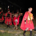 Passione Vivente 2014 a Strongoli (7)Ha riscontrato un enorme successo la settima edizione della Passione Vivente che si è tenuta a Strongoli domenica 13 aprile scorso. Come per incanto l’arrivo delle fiaccole in piazza Castello ha portato il gelo tra la gente. E’ iniziato così il ciclo morte-rinascita ed il calvario si è annunciato ed ha reso tutti un po’ protagonisti. Anche il cielo ha fatto la sua parte; da poco aveva smesso di piovere ma minacciava ancora. Dal 1998 la Passione vivente segna ormai la vita dell’intera comunità di Strongoli; un appuntamento che riesce a portare tra le strade anche le promesse fatte ed i sogni da realizzare. Si è trattato di una manifestazione di settennale esperienza, che ha saputo creare una collaudata tradizione, per l’originalità della rappresentazione: il rispetto rigoroso della verità storica e religiosa, coniugato artisticamente con un linguaggio scenico attuale e vivo, in un suggestivo paesaggio frammisto anch’esso di antico e passato. Ricordiamo che è stata promossa e sponsorizzata dalla Parrocchia dei SS. Pietro e Paolo di Strongoli, organizzata dall’Associazione Gruppo Filottete e dai Fabbricieri della Parrocchia del Vescovado, con la collaborazione dell’Amministrazione comunale, la Compagnia teatrale “Tutti per Uno”, la Parrocchia di Santa Teresa d’Avila di marina di Strongoli, la Pro Loco di Strongoli, la Misericordia e la Protezione civile. Un evento unico nel suo genere, tra le manifestazioni culturali e religiose più importanti e rappresentative della Città; è stato soprattutto un richiamo di spettatori che, da tutta la Provincia e oltre, hanno ammirato la Sacra rappresentazione, realizzata con attori del popolo, su uno scenario vario, spettacolarmente e imponente con la fedeltà storica delle ricostruzioni sceniche dell’antico Castello, in grado di mutare letteralmente l’aspetto di vie e piazze del paese. Il cuore del centro storico cittadino ha ospitato la scenografia giunta nel 2014 alla settima edizione. Curata nei minimi particolari, la “Passione Vivente” ha calamitato l’attenzione di numerosi volontari delle parrocchie stupendo per il valore aggiunto conferito dalle luci, suoni e rumori indispensabili al fine di calare il pubblico nel tempo e nei luoghi della crocefissione di Gesù Cristo. Circa 100 i figuranti in costume e numerosi gli spettatori per una rappresentazione molto attesa dalla comunità.