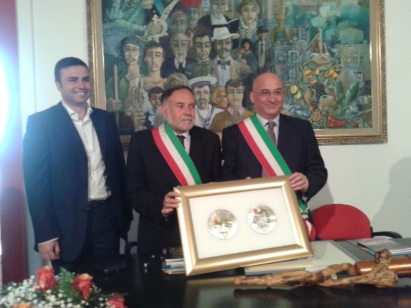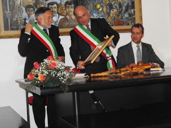 Nel corso dell’incontro è stata spiegata e presentata la fiaccola della pace scolpita in legno d’ulivo alla presenza dell’artista che l’ha realizzata, Alfonso Caniglia. Numerosi i doni che le due Città si sono scambiati. Il Sindaco Filippo Sero ha donato al Primo Cittadino di Cascia oltre alle 4 medaglie commemorative realizzate dall’orafo Tordo, anche il gagliardetto con lo stemma della Città di Cariati, numerosi testi storici-letterari di Romano e Franco Liguori in più una guida turistica. Il Sindaco di Cascia Emili, ha, invece, regalato un quadro che raffigura il Santuario di Santa Rita di Cascia oltre che uno stemma con 2 facce diverse che da un parte raffigura Santa Rita dall’altra lo stemma comunale. Padre Mario De Santis ha omaggiato il Sindaco Sero e il Presidente del Consiglio Comunale Minò con una medaglia con l’effigie di Santa Rita. Il mio invito da sindaco laico – è andato avanti Sero – è quello di cogliere questa occasione per rinverdire i valori di questa santa dei miracoli impossibili per riattualizzarli e per farli nostri. Perché riconciliazione – ha concluso – non vuol dire omologarsi ad un pensiero unico, ma essere consapevoli che ci possono essere posizioni e convinzioni che anche se non si conciliano con le nostre, all’interno di una comunità si ha comunque il dovere di trovare una sintesi che sia utile e che serva agli uomini e non a noi stessi. – Parole di ringraziamento quelle del Sindaco di Cascia Gino Emili. Siamo contenti e vi ringraziamo – ha detto – perché come sempre il popolo del sud riserva un’accoglienza calorosa e ci si sente a casa nostra. È già un ottimo impatto che ci ha fatto piacere notare. Questo è un gemellaggio particolare e insolito. Nessuna firma o atti – ha chiosato – noi vogliamo solo portare nel mondo il messaggio più che mai attuale della nostra Santa che vogliamo condividere con il mondo. L’augurio – conclude Emili – è quello di poter accogliere il prossimo 22 maggio, nella nostra Città, una nutrita delegazione cariatese.