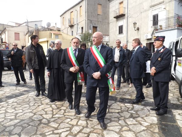 Gemellaggio Cariati-Cascia (6)Nella vicenda umana di Santa Rita quello che mi ha particolarmente colpito è la riconciliazione. Superare la rottura, che c’è stata a livello umano, per riprendere il confronto. Questo, oggi più che mai è un principio attuale e impellente anche per le istituzioni politiche. Fermo restando e tenendo conto del principio di laicità delle stesse, ritengo che queste debbano uscire dalla freddezza della forma e legalità istituzionale e guardare al popolo. Alla fede popolare che è una grande risorsa. Oggi la nostra Città, così come tante altre realtà vive una crisi economica senza precedenti. Ma non ci rendiamo conto che la vera crisi è quella morale e in un certo senso, democratica. Perché si vive in un momento in cui il conflitto è diventato centrale e irriducibile. La democrazia, invece, dovrebbe vivere di confronto su idee e problemi, di scontro dialettico piuttosto che conflittuale e fine a se stesso. Con queste parole il Sindaco Filippo Sero ha dato il benvenuto sabato mattina alla delegazione casciana per il 56° gemellaggio di fede e di pace. L’incontro tenutosi in una gremita sala consiliare, si è aperto sulle note delle Banda Musicale Città di Cariati in piazza Rocco Trento. Numerosi cittadini presenti alla cerimonia. Tra gli altri anche le associazioni e le autorità militari. Oltre alla Polizia Municipale di Cariati con il gonfalone, anche il Comandante dei Carabinieri della locale stazione Nicodemo Leone, una delegazione dell’Associazione Nazionale Carabinieri “Alfio Ragazzi” di Cariati e Don Angelo Bannardis parroco della Chiesa S.Maria delle Grazie. Oltre al Sindaco Sero, erano presenti il vicesindaco Leonardo Montesanto, l’assessore al bilancio Leonardo Celeste, il Presidente del Consiglio Cataldo Minò, l’assessore provinciale all’urbanistica Leonardo Trento e il consigliere Francesco Cosentino. A rappresentare la Città di Cascia c’erano il Sindaco Gino Emili, l’assessore Monica Del Piano, la consigliere capogruppo di opposizione Luisa Di Curzio e padre Mario De Santis rettore del Santuario di Santa Rita di Cascia.