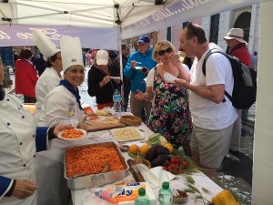 Gli stessi passeggeri hanno voluto partecipare alle danze prima di partire per gli itinerari proposti scatenandosi insieme al gruppo. Ma non sono stati solo la musica e il ballo a interessare i 1300 passeggeri; grazie ad un gruppo dell’Unione Cuochi italiani è stato possibile offrire un bel piatto di covatelli alla crotonese, nel giro di pochi minuti gli oltre 50 chilogrammi di pasta messi a disposizione sono stati letteralmente divorati dai turisti che hanno dimostrato di apprezzare parecchio. Il coinvolgimento è divenuto totale quando gli stessi si sono cimentati nella realizzazione dell’impasto dei covatelli e degli scilatelli al ferretto. Questa fase è stata seguita direttamente dalla dottoressa Panaja, componente dello staff dell’assessore Capocasale, che si è adoperata nello spiegare in inglese tutte le fasi del procedimento. Inoltre la storia e la ricetta della “pasta fatta in casa” è stata stampata in lingua inglese su mille volantini realizzati dalla Provincia. Alla fine della giornata molti crocieristi hanno ringraziato, abbracciato e baciato le chef e i giovani artisti di Isola per la bella giornata trascorsa. Impressionato dal lavoro svolto l’osservatore di “Costa Crociere” il quale ha degustato i covatelli ed apprezzato la musica del gruppo folk, confessando all’assessore Capocasale che questo circuito diventerò vincente esclusivamente con una grande collaborazione da parte di tutte le istituzioni.