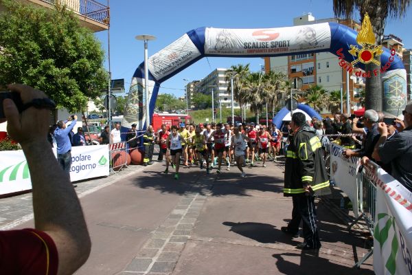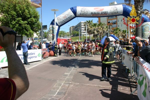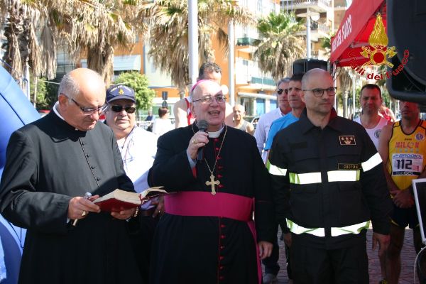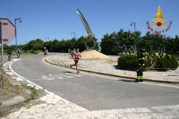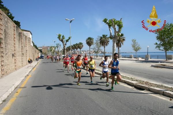 II Corsa Madonna di Capocolonna (5)Si è svolto a Crotone, domenica 11 maggio, il 4° Campionato Italiano VV.F. di Podismo, nell’ambito della gara regionale FIDAL denominata “2 ° corsa Madonna di Capocolonna”, che costituiva anche campionato regionale a staffetta delle società FIDAL calabresi. In una giornata primaverile, alla presenza del Comandante provinciale, Dott. Ing. Giuseppe Bennardo, dei rappresentanti Fidal e di molte autorità provinciali, le 68 staffette V.F. partecipanti, in rappresentanza di 26 Comandi Provinciali di 12 Regioni d’Italia, insieme ad altre 30 staffette regionali, hanno dato vita ad un’avvincente gara sul percorso che, dal lungomare di Crotone raggiungeva il promontorio di Capocolonna in corrispondenza dell’area archeologica (dove è stato previsto il cambio di staffettista proprio nella zona antistante il museo) e ritorno verso la Città di Crotone. Il percorso caratterizzato dai variegati colori della primavera con scorci a strapiombo sul mare di un azzurro intenso, aveva oltre alla valenza sportiva e naturalistica anche un significato religioso essendo quello che ogni anno effettua la sacra icona della Madonna di Capocolonna. Alla partenza l’Arcivescovo di Crotone Mons. Domenico Graziano ha salutato i partecipanti impartendo la benedizione.