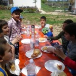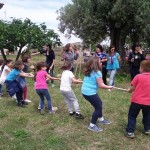 Caterina e Gino MuranoIndubbiamente molto istruttiva per i bambini questa giornata, particolare sotto molti aspetti, anche gastronomico, in quanto gli scolaretti hanno potuto assistere anche alla lavorazione del pane, collaborando fattivamente nella preparazione dei panini con la soddisfazione di mangiarli dopo appena usciti dal forno e di averli fatti con le loro manine. Anche il forno, a legna, è caratteristico all’interno di questa fattoria in quanto viene alimentato esclusivamente con fascine provenienti dagli alberi di ulivo, di arancio e mandarino sprigionando fumo aromatico che arricchisce il gusto dei prodotti sfornati. La dinamica padrona di casa cura tutte le varie fasi di questa giornata speciale, non solo conducendo i bambini nelle visite agli animali e mostrando loro in diretta la semina di alcune piante e l’allestimento di alcuni spaventapasseri, ma anche preoccupandosi di intrattenerli con molti giochi di squadra. Il momento del pranzo raduna tutti alle panche in giardino, al fresco delle numerose piante; ai bambini, agli insegnanti ed alle mamme vengono servite le pizze ed il pane fragranti preparati in mattinata e sfornati al momento. Il dolce, una ciambella, è preparata con le uova delle galline della fattoria e dopo il pranzo si procede alla raccolta differenziata dei rifiuti, separando l’umido che servirà da mangime agli animali. Caterina, la padrona di casa, seppur coadiuvata da altre tre energiche signore, si spende ininterrottamente, disponibile ed affabile, affinchè tutti stiano bene; l’obiettivo sembra essere stato raggiunto, quando arriva il pulmino della scuola a prelevare i bambini per riportarli a casa appaiono tutti soddisfatti e spensierati e sicuramente con qualche cognizione in più.