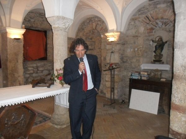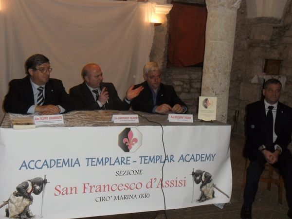 Si è svolta nella magnifica cripta della chiesa di San Donato di Umbriatico la presentazione dei libri intitolati “Ombre Templari a Umbriatico” e da un straordinario video realizzato da Giuseppe Pisano e “Templari e dintorni” da Filippo Grammauta. Ad aprire i lavori di questa presentazione dei libri è il Direttore Cav. Enzo Valente ha voluto sottolineare che in questo solitario luogo si coltivavano scienze e conoscenze storiche di grande rilievo che nel ”900 era un punto Luminoso di Fede di Cultura e di Santità. Il nostro Arcivescovo S.E.Domenico Graziani sarebbe stato felice di presiedere la nostra iniziativa culturale e spirituale le sue incombenze Pastorale lo avrebbe permesso. Nonostante il cattivo tempo circa un centinaio di persone hanno assistito alla presentazione moderata dal Grande ufficiale del Gran Priorato d’Italia O.S.M.T.H., Gianfranco Palmieri. Hanno porto il loro saluto il sindaco di Umbriatico Pasquale Abenante e il direttore della sezione di Cirò Marina dell’Accademia Templare, Enzo Valente i quali hanno voluto complimentarsi con i relatori per il lavoro di ricerca e sottolineare l’importanza dell’iniziativa per lo sviluppo del territorio. E’ seguito l’intervento del segretario generale dell’Accademia Templare, Filippo Grammauta il quale ha dato inizio alla sua dissertazione tracciando la storia dei cavalieri templari.