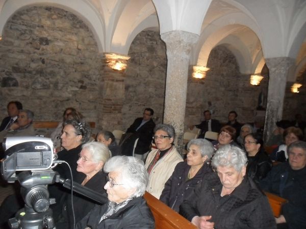 In merito a ciò Grammauta ha tenuto a evidenziare che sui Templari attraverso reportage, centinaia di libri, decine di film, articoli, inchieste televisive si è detto tutto e il contrario di tutto e che invece ci sarebbe bisogno di un maggior rigore scientifico nella valutazione delle ipotesi. Inoltre il segretario dell’Accademia ha parlato dei templari nel Regno di Sicilia nel XIII secolo e della presenza dell’Ordine del Tempio in Calabria a quel tempo. Successivamente è intervenuto lo studioso Giuseppe Pisano il quale ha spiegato le particolarità presenti a Umbriatico che riconducono ai cavalieri rossocrociati. Pisano ha parlato delle tombe di cavalieri in armi ritrovate presso la chiesa di Santa Maria e forse anche in un punto di comunicazione sotterranea tra la chiesa di San Donato e la chiesa di San Francesco (ora casa privata). Inoltre lo storico soveratese si è voluto soffermare sulle importantissime reliquie (portate a Umbriatico, secondo alcuni testi, dal crociato Jacobus de Juranna) conservate nell’ex cattedrale: la Sacra Spina (che sanguina solo quando il 25 marzo coincide con il Venerdì Santo); il Chiodo di Gesù (cui uno studio ha accertato essere “una parte di chiodo fabbricato in Palestina nel 1° secolo utilizzato per una crocifissione”); i frammenti della Veste di Gesù, del Velo della Veste della Santa Vergine, del Sacro Legno e della Colonna della Flagellazione tutti racchiusi in un reliquiario i cui sigilli sono antichi e intatti. Infine sempre all’interno della suggestiva cripta è stato proiettato il DVD realizzato da Pisano dal titolo “Ombre templari a Umbriatico” che ha sorpreso positivamente il pubblico presente.Il Direttore Cav. Enzo Valente ha voluto infine ringraziare con affettuosità i relatori, il moderatore, i soci dell’Accademia Templare di Cirò Marina per il lavoro svolto magnificamente, il Sindaco, il Parroco Don Giuseppe, Padre Gianni, Padre Serafino e Monsignore Terminelli, il presidente dell’Accademia Nazionale Stelio Venceslai, gli amici e gli Umbriaticesi. Al termine dell’incontro, dopo gli attestati di riconoscimenti consegnati dal sindaco e dal Direttore agli studiosi e al moderatore, tutti i presenti hanno potuto vedere da vicino le succitate reliquie oltre a un Turibolo orientale in argento del 1500 circa considerato uno tra gli altri indizi della sopravvivenza del rito bizantino con quello latino, e quindi della presenza dell’Ordine del Tempio in questo luogo.