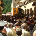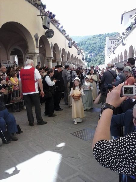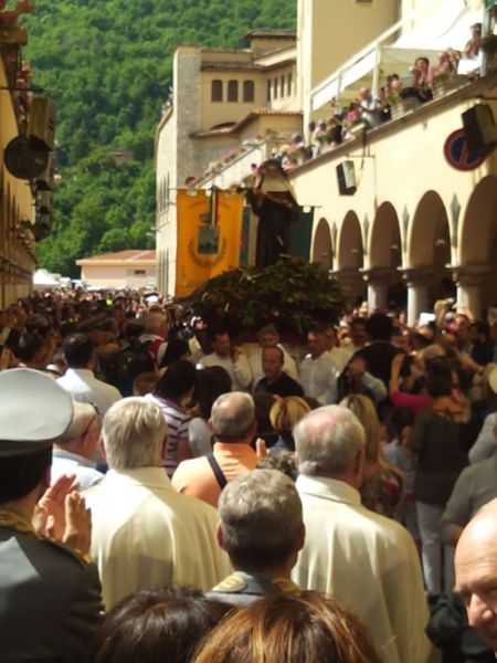 Nella giornata di mercoledì 21, Filomena Greco, consigliere comunale e rappresentante dell’Azienda Igreco ha donato un’ampolla con l’olio realizzata da Jureka Srl di Cariati e Neon Sila di Cosenza, consegnata poi dalla stessa Greco e dal Sindaco Sero alle suore agostiniane. Per un anno l’olio arderà nella lampada di Santa Rita. – Nella giornata di ieri (giovedì 22) dopo la processione da Roccaporena, alla quale si è unito il corteo storico con i tradizionali costumi quattrocenteschi, si è tenuta la Solenne Pontificale presieduta dal Cardinale James Michael Harvey, Arciprete della Basilica Papale di San Paolo fuori le Mura. Santa Rita – ha detto Sero – è l’emblema di una santità semplice, silenziosa e umile. Una santità che nell’operosità e nella preghiera si conferma e si conquista quotidianamente. Dobbiamo recuperare questa operosità. La capacità di ascoltare senza pregiudizi sapendo che è nel rapporto con l’altro, e quindi con la comunità che l’individuo realizza la più vera e intima essenza della propria umanità. Nell’accendere il tripode votivo e nell’alimentare la fiamma con l’olio – ha concluso il Sindaco – che è il prodotto della nostra fatica e della nostra terra, riaccendiamo la nostra speranza di un futuro di pace e di prosperità per noi e per tutte le comunità del mondo che sentiamo oggi qui presenti in un abbraccio ideale. – A Cascia batte un cuore calabrese – ha dichiarato il Sindaco Gino Emili. La nostra vicinanza a questa meravigliosa parte d’Italia – è andato avanti – si è manifestata anche nello scorso mese di aprile quando la delegazione casciana è stata ospite a Cariati dove è stata accesa la fiaccola che oggi è giunta nella nostra Città. Noi gente di montagna – ha concluso il Sindaco di Cascia – abbiamo vissuto la vertigine degli orizzonti aperti dello splendido mare calabrese. Sono certo analoghe emozioni avete provato voi, amici di Cariati, giungendo qui, con questi nostri orizzonti chiusi dalle montagne.