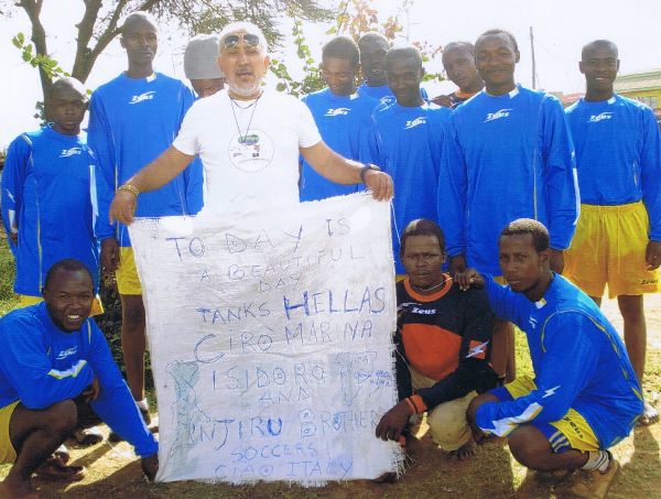 “Un seme per l’Africa”, questo lo slogan del suo progetto, scelto per cercare di dare visibilità al suo impegno umanitario. In questo impegno, fra tanti altri, ha trovato a sostenere la sua azione anche la società sportiva di calcio a cinque, l’Hellas Cirò Marina che ha nominato proprio Isidoro Bossio, presidente onorario della stessa società. E’ nato così un gemellaggio fra i “Rangers N’Jiru Boys” Kenyoti e la stessa Hellas Cirò Marina che ha subito inviato per mezzo di Isidoro, una divisa di calcio completa, per la gioia e felicità dei giovani talenti africani. Rivolgendo parole di vero e sentito ringraziamento, i giovani calciatori hanno voluto ringraziare uno ad uno i dirigenti del sodalizio sportivo Ciromarinese, dal Presidente Nino Trifirò alla famiglia Maietta tutta, capitano Domenico compreso, mister Tavernese, Nicodemo Vetere e tutti i soci, per avere così, ancora una volta testimoniare che il calcio produce valori positivi, socialità, unione. Valori che sicuramente l’Hellas Calcio a cinque in questi suoi primi anni di attività sportiva ed agonistica, ha saputo, testimoniare e mettere in campo sempre.