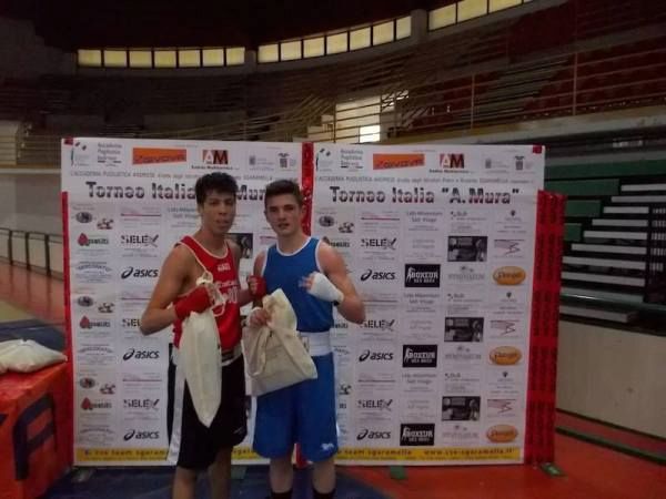 Dal 31 maggio al 2 giugno si è tenuto presso il Palasport di Andria, l’edizione 2014 del Torneo Italia “Alberto Mura”, uno dei più importanti tornei a livello nazionale. 153 i pugili delle categorie Schoolboy (46), Junior (48) e Youth (59), che vi hanno preso parte. La competizione, indetta dalla FPI, è stata organizzata in collaborazione con l’ASD Acc. Pugilistica Andriese (BAT) ed ha avuto il patrocinio del Comune di Andria e della Provincia di Barletta-Andria-Trani. Alla manifestazione, che ha riunito pugili provenienti da tutta Italia, ha partecipato anche il bravo pugile cirotano Cataldo Nigro della Kroton Boxe, all’esordio nella categoria Youth (60 Kg). Bisogna dire che i sorteggi non sono stati affatto benevoli per il nostro pugile che ha trovato nel proprio girone avversari che hanno disputato un numero impressionante di incontri, variabile dai 40 ai 50. Ma ciò non ha di certo demoralizzato il giovane Nigro ed il suo allenatore, il campione Tobia Loriga il quale ha accompagnato e seguito Cataldo in ogni momento delle giornate che hanno preceduto gli incontri.