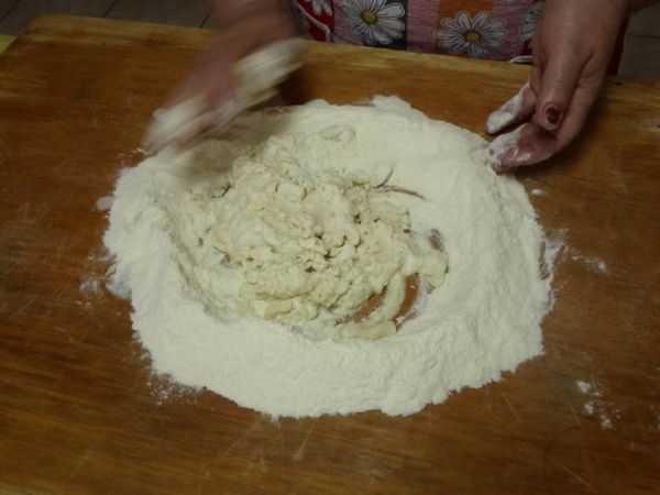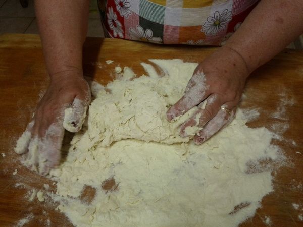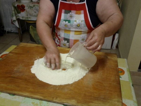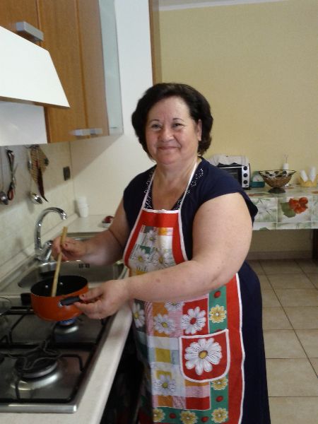 Signora VittoriaLa signora si vede che è dotata di una notevole maestria affinata dall’esperienza e supportata da una incredibile energia, il tutto condito da una squisita cordialità ed un calore umano fuori dal comune; nella sua cucina si muove rapida e sicura, sempre con quel sorriso bonario che avvolge e ti fa sentire come in un caldo e comodo nido. La casa della signora Vittoria si trova in un rione con le case tutte vicine per cui il vicinato diventa un micro cosmo in cui tutti si conoscono ed interagiscono confidenzialmente tra di loro. La cucina è al piano terra e la grande porta vetrata rimane sempre leggermente aperta cosicché ogni tanto si affaccia qualche vicina, anche in pantofole e con il grembiule, attratta dagli aromi che si diffondono nella via o semplicemente per salutare; qualcuna si ferma per continuare il proprio lavoro all’uncinetto scambiando due chiacchiere in allegria. Quando si preparano queste pietanze particolari, all’ora di pranzo c’è sempre qualche piatto destinato a qualcuno del vicinato perchè, come dice la signora Vittoria: “a ‘rrobba quanni a duni criscia” (la roba, quando ne dai anche agli altri, ti aumenta). Passeremo ora a descrivervi i vari passaggi di questa tradizionale ricetta illustrandola con una galleria fotografica.