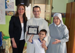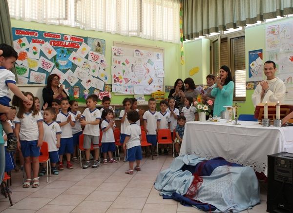 Successivamente si è passati alla cerimonia di consegna del Premio dedicato a Madre Rosa Gattorno, la fondatrice che amava farsi chiamare Madre da tutte le suore dell’Istituto, perché secondo la Gattorno una madre è sempre pronta a qualsiasi sacrificio per amore dei suoi affetti più cari. Il Premio Beata Madre Rosa Gattorno, nato come concorso grafico pittorico destinato ai bambini della scuola, quest’anno giunge alla sua terza edizione. In questo breve tempo si è arricchito di due nuove sezioni. Lo scorso anno è nata la sezione dedicata alla famiglia, quest’anno una nuova sezione arricchisce il Premio, quella destinata ai nonni. Riconoscimenti dunque a tre nonni: Angelo Mancino, Maria Ciminelli e Lucrezia Felice. Un riconoscimento simbolico per la sezione destinata alla famiglia è stato dato alla Presidente del Consiglio di Scuola la Dott.ssa Maria Carmela Nigro. Infine il Premio quest’anno è stato donato alla Famiglia di Cataldo Sammarco e Vittoria De Luca perché si è distinta per altruismo e solidarietà sulle orme di Rosa Gattorno adottando il giardino della scuola. Subito dopo la cerimonia, è stata celebrata la Santa Messa di ringraziamento in previsione della conclusione dell’anno scolastico da Fra’ Mario Chiarello. Nel pomeriggio i lavori sono ripresi nel giardino della scuola. Nei saluti iniziali il dirigente dell’Istituto Comprensivo n. 1 il Professore Giuseppe Barberio si è congratulato con l’équipe della scuola per l’organizzazione delle diverse manifestazioni. In rappresentanza del Sindaco è giunto l’assessore alla pubblica istruzione l’ingegnere Francesco Ferrara che nel saluto ai presenti ha evidenziato la voglia del saper fare e la competenza del team educativo che sa dare risposte e attenzioni alle esigenze di tutti coloro che si avvicinano all’unica Istituzione che ha valori cristiani sul territorio. L’assessore si è inoltre impegnato con il folto pubblico e con la scuola a far sì che la manifestazione in onore della fondatrice delle “Figlie di S. Anna” assuma carattere culturale e diventi un Premio Istituzionale. Al termine dei saluti, la Presidente della Commissione del Premio, la Professoressa Graziella Aloisio, Vice Preside dell’Istituto Comprensivo n. 1, nel suo intervento ha sottolineato l’importanza della tematica scelta quest’anno per il concorso rivolto ai bambini che rispecchia preziosamente l’idea che la fraternità è la via giusta per far giungere verso la pace. Si è passati alla consegna del Premio ai bambini. Sono stati premiati, con una settimana di vacanza al mare gratuita da fruire nella colonia estiva della fondazione: Klevis Beqo, Giovanna Capoano, Samuele Potrone, Emanuele Benevento, Maria Antonietta Zucco, Leonardo Bartolo. Al termine della cerimonia, come da programma, tutti i bambini della scuola hanno realizzato un Musical ispirato al tema del Premio. E’ stata poi la volta della rappresentazione scenica “Volo di colomba”, scritta e diretta dall’insegnante Elisa Capoano e interpretata dai genitori Giusy Affatato, Salvatore Terminelli, Vincenzo Lo Presti, Saverio Cerminara, Anna Pirito, Rosa Salerno, Manuel Santoro, Stefania Portone, Donatella Petti, Tiziana Fico, D’Agostino Dalila, Papaianni Rosalba, Beatrice Iuele, Rita De Fine, Dina Capalbo. Dopo la rappresentazione l’adrenalina dei bambini della sezione 5 anni saliva perché per loro era il grande giorno del commiato. Le maestre Elisa Capoano e Teresa Caligiuri hanno ringraziato con grande calore materno i loro piccoli ed hanno consegnato loro i meritati diplomi. Nella gioa di tutti gli auguri più belli a: Adorisio Natalia, Avena Anna Francesca, Bartolo Leonardo, Cerminara Antonio, Farao Giuseppe, Golino Giovanni, Iuliano Roberta, Liotti Riccardo, Lo Presti Giovanni Paolo, Mancino Angelo, Mehrabi-Kermani Itria, Monaco Maria Pia, Morgione Chiara, Murano Tony, Quattromani Francesca, Radicchia Lorenzo, Sammarco Francesco Pio, Scarpelli Maria Gabriella, Siciliani Giosuè, Tavernese Lisa Rebecca, Tosto Francesca, Vrapi Erisel, Zucco Maria Antonietta. La serata si è conclusa con il taglio della torta da parte dell’Assistente Generale Sr Anna Lette Cristos.