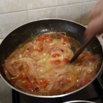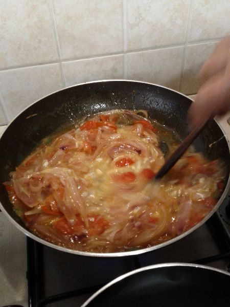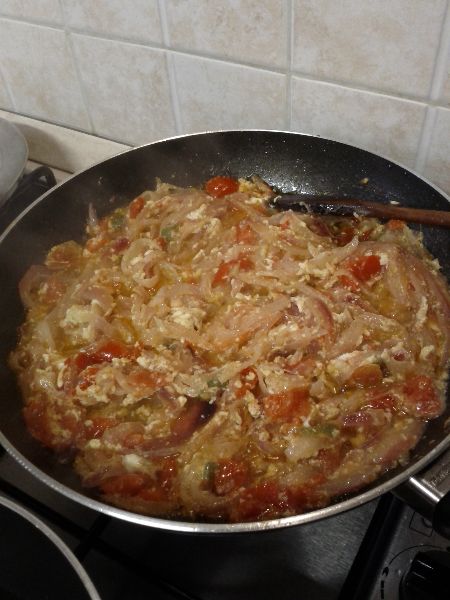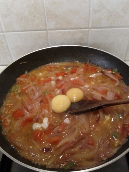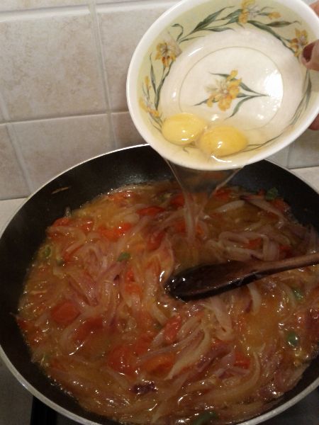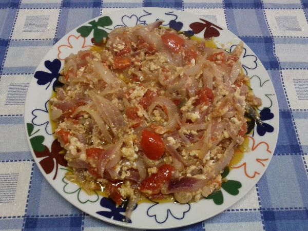 Pulire le cipolle e tagliarle per il verso lungo, in verticale, in tanti spicchi di medie dimensioni. Versare l’olio nella padella e quando è caldo versare le cipolle facendole appassire. Tagliare i pomodorini a spicchi ed aggiungerli alle cipolle appassite continuando nella cottura, aggiungere il sale. La nostra lettrice ha aggiunto anche un peperoncino sminuzzato, che da’ quel tocco di gusto in più, come i calabresi ben sanno. Quasi alla fine della cottura accorpare le uova ed amalgamare gli ingredienti tra di loro fino a che le uova saranno rapprese. La “cipuddata” è pronta. Facile,