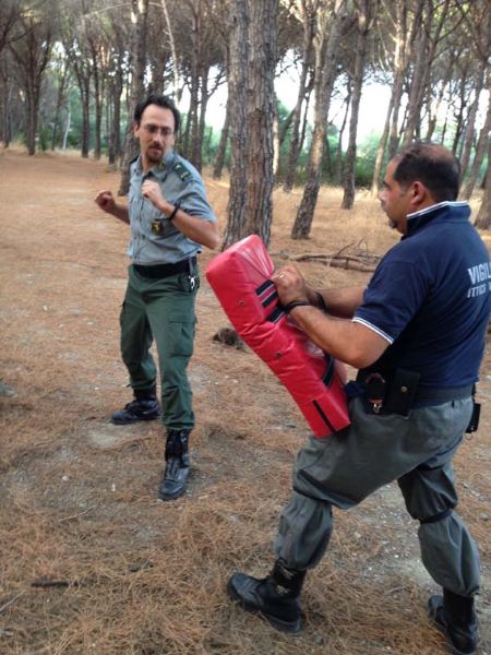 Corso di difesa personale (12)Venerdi 4 giugno si è concluso il I° Corso Operativo di Difesa Personale, per gli Agenti della Polizia Ambientale di Cirò Marina. Il corso voluto fortemente dal Comandante Arch. Enzo Renda, ha visto impegnate più di dieci agenti tra aspiranti ed operatori già in possesso del Decreto Prefettizio. E’ stato un addestramento molto impegnativo della durata di due giorni, iniziato nella palestra di arti marziali “Tigers” e terminato nella pineta di Cirò Marina, l’ambiente tattico ideale per gli operatori impegnati. L’istruttore Nazionale di Tecniche di difesa personale e Tiro Dinamico Operativo, nonchè M° di Taekwondo Martino Natalino, si occupa ormai da diversi anni della formazione operativa e di corsi di aggiornamento professionale per G.P.G, corsi volti alla valutazione e l’implementazione che il suddetto ruolo richiede. Martino ci spiega come si è articolato il corso: “mi ritengo molto soddisfatto di come i ragazzi abbiano affrontato questo percorso formativo e mi sento in dovere di ringraziare in prima persona il Comandante della Polizia Ambientale di Cirò Marina Enzo Renda. Abbiamo iniziato in palestra, provando aggressioni contro armi proprie ed improprie, siamo passati poi al secondo step, fuori dalle mura della struttura sportiva, recandoci in un ambiente naturale come la pineta, dove gli operatori svolgono la maggior parte dei loro servizi”.