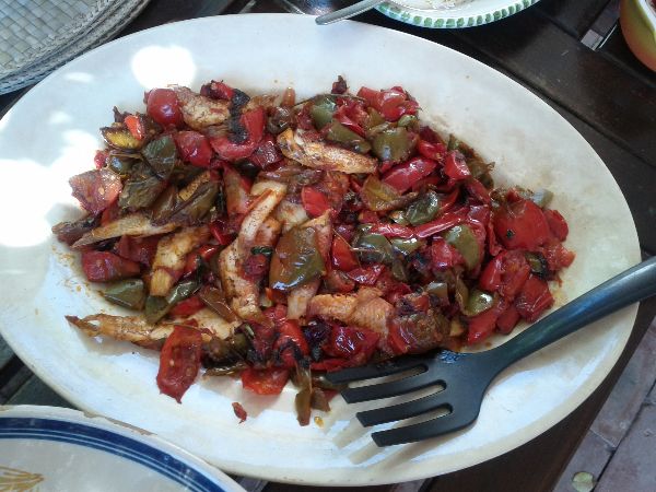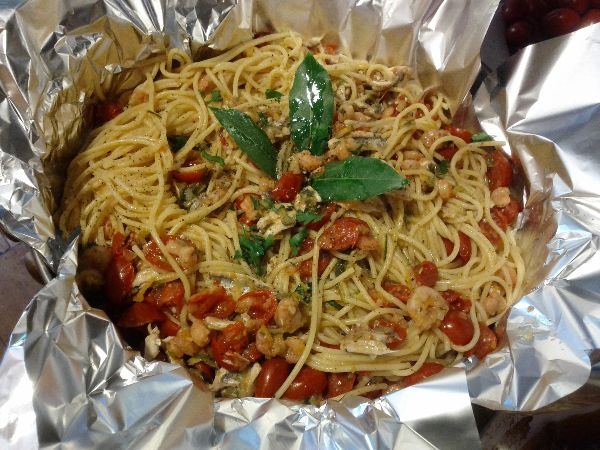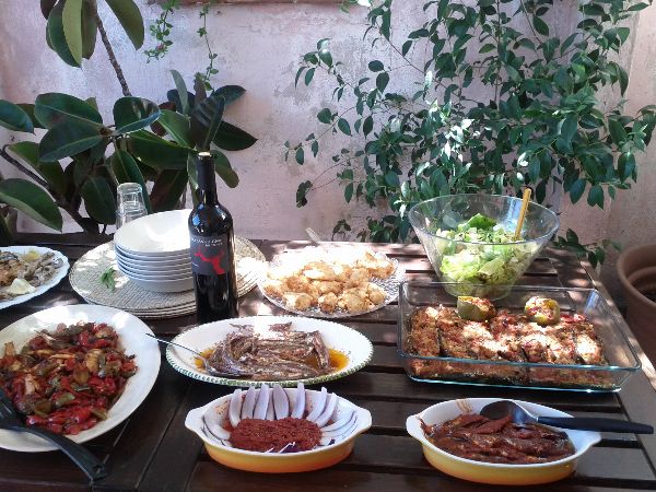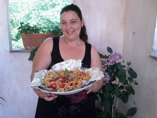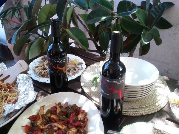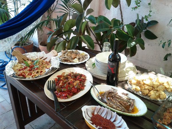 Casa Seppetto (11)La nostra rubrica di cucina “Chef per un giorno” oggi avrà uno svolgimento un po’ inconsueto rispetto all’impostazione abituale in quanto non si limiterà alla sola ricetta con illustrazione fotografica e relativo procedimento, ma condurrà tutti voi lettori all’interno di un pranzo estivo, su un bel terrazzo, dove protagonista è il cibo ma anche la buona compagnia ed il buon vino. Descrivere tutte le ricette che componevano questo magnifico pranzo non sarebbe possibile per ovvi motivi, per cui vi mostreremo solo le immagini delle varie pietanze ad eccezione del primo piatto, gli spaghetti, di cui vi forniremo le foto e la descrizione,e, che, pur essendo stati ideati al momento con quello che c’era in cucina, vi stupiranno al primo sguardo per il risultato finale, sia visivo e, per noi, anche olfattivo e gustativo.