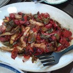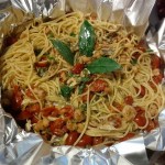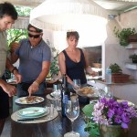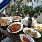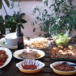 La nostra rubrica di cucina “Chef per un giorno” oggi avrà uno svolgimento un po’ inconsueto rispetto all’impostazione abituale in quanto non si limiterà alla sola ricetta con illustrazione fotografica e relativo procedimento, ma condurrà tutti voi lettori all’interno di un pranzo estivo, su un bel terrazzo, dove protagonista è il cibo ma anche la buona compagnia ed il buon vino. Descrivere tutte le ricette che componevano questo magnifico pranzo non sarebbe possibile per ovvi motivi, per cui vi mostreremo solo le immagini delle varie pietanze ad eccezione del primo piatto, gli spaghetti, di cui vi forniremo le foto e la descrizione,e, che, pur essendo stati ideati al momento con quello che c’era in cucina, vi stupiranno al primo sguardo per il risultato finale, sia visivo e, per noi, anche olfattivo e gustativo.