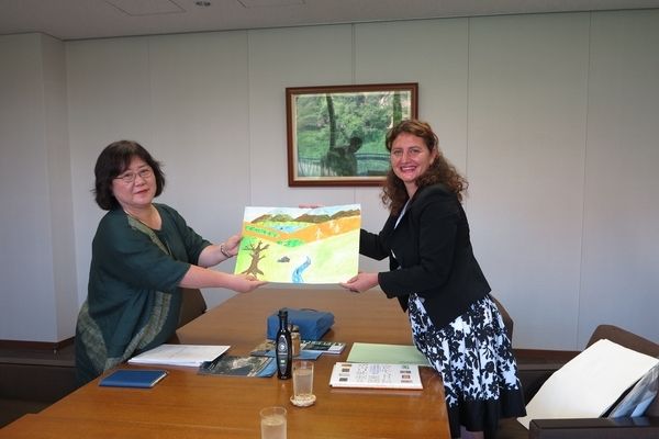 Savina Tarsitano ha iniziato da un anno una collaborazione con il Gal Kroton per promuovere il mondo rurale crotonese in tutti i Continenti, convinta che la sensibilizzazione delle piccole comunità locali è necessaria per la costruzione di un mondo migliore. Nell’ambito di queste iniziative ed incontri giapponesi sono stati consegnati i disegni realizzati dai bambini crotonesi durante il primo workshop organizzato nella bellissima sede della Torre Aragonese di Melissa in relazione alla partecipazione al 22 concorso “World Children’s Picture Contest”. In quest’occasione sono state presentate ai rappresentanti delle associazioni giapponesi le attività promosse dal Gal Kroton, nonché i prodotti delle aziende aderenti al paniere della salute e del gusto con lo scopo di attivare future cooperazioni e collaborazioni tra il Giappone e la Calabria.