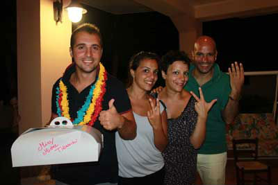 Al primo posto di è piazzato, riportando il massimo dei voti, il ‘tiramisù’ di Salvatore Gagliardi (amatore dell’arte dolciaria e buon intenditore di gastronomia!), che è stato omaggiato di una splendida e coloratissima collana hawaiana ed ha ricevuto come premio, al posto della solita coppa, un Trofeo di…Dolcezza, ovvero una meravigliosa torta alla frutta, unitamente ad un fragorosissimo e lungo applauso di tutti i presenti.