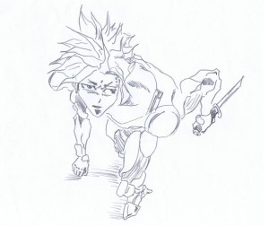 Disegni di Francesco Tesi (1)Disegni di Francesco Tesi (2)Il suo programma e’entrare in Giappone con un visto studentesco, quindi come studente, altrimenti sarebbe costretto a rientrare una volta scaduto il visto, frequentare la scuola di una grande citta’ lavorando part-time preferibilmente come assistente per chi crea gia’ i fumetti, in quanto lo standard giapponese impone 21 pagine settimanali obbligatori, e soprattutto studiare la lingua, che non e’ difficile come grammatica ma comprende due alfabeti basilari (Hiragana e Katakana) piu’ gli ideogrammi (Kangi) mentre il nostro viene da loro definito Romanji (alfabeto romano). Chiediamo a Francesco, che ha un fratello piu’ grande ed uno gemello che lavorano entrambi, cosa pensano i suoi genitori di una scelta cosi’ radicale come quella di trasferirsi in Giappone, risponde che sono abbastanza rassegnati a questa sua vocazione in quanto ci convivono ormai da tempo ma come hanno fatto tanti genitori di artisti esortano il figlio a trovarsi un lavoro vero. Non possiamo fare a meno di augurare a Francesco di realizzare tutti i suoi sogni e che tra qualche anno, nell’elenco degli autori di fumetti Manga giapponesi vi sia anche il suo nome: Francesco Tesi di Ciro’ Marina, Calabria, Italy.