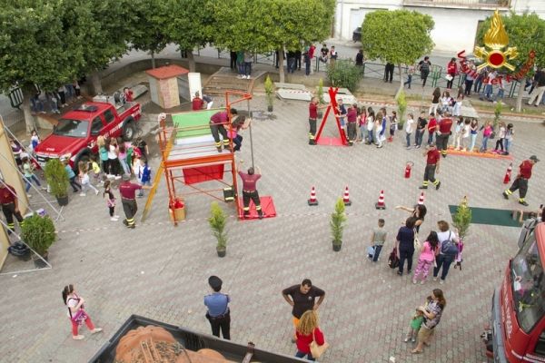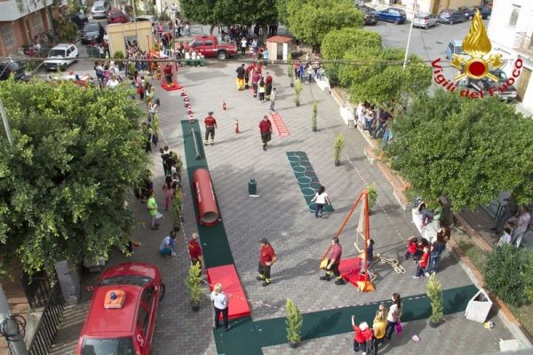Sotto lo sguardo attento di genitori ed insegnati cinquecento ragazzi delle scuole dell’infanzia ed elementari hanno potuto cimentarsi nel gioco educativo che simula le attività dei Vigili del Fuoco in caso di emergenze e incendi.