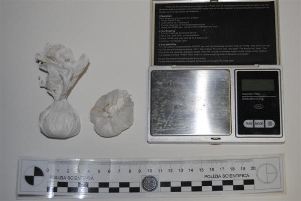 All’esito di tali perquisizioni, nel giardino di casa, interrato in una buca, si rinveniva un contenitore in vetro contenente 2 involucri di sostanza stupefacente del tipo cocaina e ritagli circolari di cellophane, usati per il confezionamento delle dosi, il tutto occultato da un secchio di plastica; all’interno dell’abitazione si rinveniva un bilancino digitale di precisione perfettamente funzionante e la somma di euro 690,00 di vario taglio. Da una prima analisi dello stupefacente è ragionevole stimare il ricavo di circa duemila euro dalla vendita al dettaglio. Dopo le formalità di rito l’arrestato veniva tradotto presso il proprio domicilio agli arresti domiciliari in attesa del rito direttissimo.