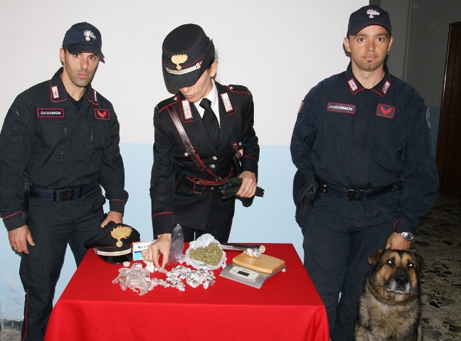 Alle prime luci di oggi 28 ottobre 2014 i Carabinieri di Petilia Policastro hanno tratto in arresto una coppia di conviventi per detenzione ai fini di spaccio di sostante stupefacenti. L’uomo, Marrazzo Massimo cl’82, vecchia conoscenza dei Carabinieri a causa dei suoi pregiudizi penali, era da tempo sotto la lente degli investigatori i quali sospettavano avesse adibito la sua abitazione, in pieno centro mesorachese, a centrale di spaccio per ragazzi del posto e forestieri. Qualche settimana prima infatti i militari avevano rinvenuto nei pressi della sua abitazione, ma su territorio pubblico, occultati in un muretto a secco una trentina di grammi di marjiuana: da qui sono partiti gli accertamenti, i pedinamenti, le attività di riscontro discreto su quanto ipotizzato. Questa mattina si è deciso per l’irruzione nella palazzina, premunendosi però di chiamare in causa anche un validissimo “collega”: Ergos, un bellissimo cane lupo in servizio all’ Unità Cinofila del Gruppo Operativo Calabria di Vibo Valentia.