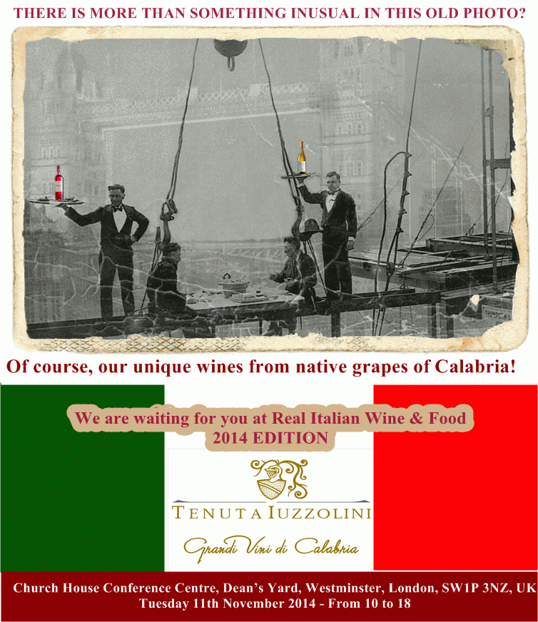 La “ Real Italian Wine and Food 2014 ,per il migliore vino prodotto in Calabria ha invitato la Tenuta Iuzzolini  a Londra. Si legge sull’invito:” ho l’onore di invitarvi alla Real Italian Wine & Food 2014 italiano, per assaggiare insieme i vini speciali prodotti dagli acino d’uva nati in Calabria. Spero di avervi con noi martedì, 11 novembre dalle 10.00 a 18.00, presso la Casa Conferenza Centro Dean, Westminster, Londra”. E’ una grande soddisfazione per l’amministratore unico Pasquale Iuzzolini, il quale riferisce:” La qualità, nel nostro lavoro, premia sempre ed e’ determinante per poter competere all’estero”. Non solo Londra come palcoscenico internazionale, ma recentemente lo spumante Iuzzolini è approdato in Francia. L’Italia prosegue Iuzzolini- ha bisogno di esportare non solo il marchio “made in Italy” ma anche e soprattutto il suo valore intrinseco, ovvero la qualità e lo stile italiano, riconosciuti nel mondo come standard di riferimento.