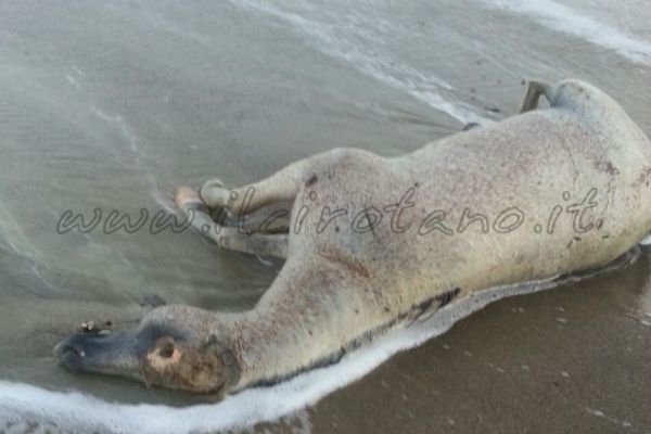 Un cavallo morto è stato trovato sulla spiaggia di Cirò Marina, nel crotonese. L’animale di colore grigio sorcino è stato scoperto, ormai in avanzato stato di decomposizione, nella zona sud del paese, in località Torrenova. Sul posto, affollato da molti curiosi, è giunto il veterinario dr. Giuseppe Bruno che prontamente ha segnalato il fatto alle autorità competenti, carabinieri, veterinari dell’Asl e vigili urbani che rimuoveranno la carcassa.