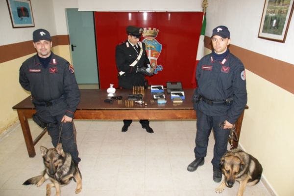 I Carabinieri del comando provinciale di Crotone, supportati da 2 unita’ cinofile del gruppo operativo Calabria di Vibo Valentia, hanno tratto in arresto Viscomi Antonio, cl. 76, residente a Cutro, frazione San Leonardo, coniugato e con precedenti di polizia. A seguito di una approfondita perquisizione domiciliare, i militari hanno rinvenuto presso la sua abitazione e l’annesso garage: una pistola marca “Beretta”, modello “98 fs”, calibro 9×21 con matricola punzonata e 2 caricatori; una pistola marca “smith & wesson”, calibro 38 special, con matricola punzonata; una pistola marca “beretta”, calibro 6,35, con matricola abrasa, comprensiva di 4 caricatori; 60 cartucce vari calibri; 50 grammi di sostanza stupefacente del tipo cocaina; 77 grammi di sostanza stupefacente del tipo marijuana;351 grammi di sostanza da taglio.