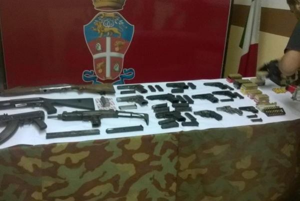 I Carabinieri del Comando Provinciale di Crotone, alle prime luci dell’alba, sfruttando proprio patrimonio informativo, hanno effettuato una perquisizione a Cutro in località San Leonardo, dove in una abitazione estiva hanno rinvenuto un vero e proprio arsenale composto da pistole, fucili, Kalashnikov e mitragliatrici. A questo si aggiungono 800 munizioni di vario calibro, circa 40 caricatori e materiale vario per la pulizia e la manutenzione delle armi che erano tutte efficienti e in perfetto stato di conservazione.