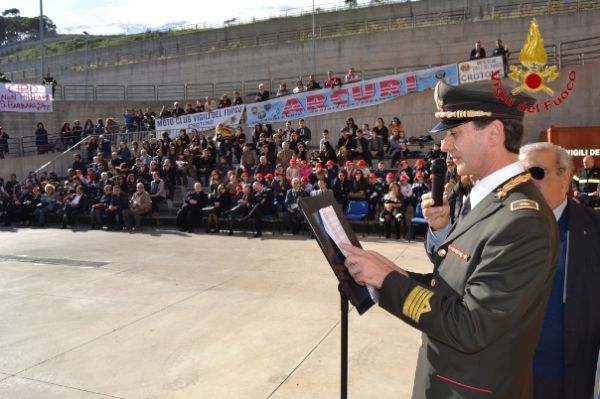 Festeggiamenti Santa Barbara (5)Il 4 dicembre, nella Basilica della Cattedrale di Crotone, si è celebrata la cerimonia religiosa in occasione della festività di Santa Barbara, protettrice dei Vigili del Fuoco e dei Marinai d’Italia. La cerimonia, da sempre fortemente sentita, si svolge da alcuni anni con la partecipazione congiunta di Vigili del Fuoco e personale della Capitaneria di Porto e ha visto la partecipazione massiccia delle famiglie degli uomini e delle donne dei due corpi. Al termine della messa, le autorità intervenute si sono spostate presso la sede centrale del comando dei Vigili del Fuoco di Crotone dove, di fronte ad un folto pubblico composto anche da diverse scolaresche, il comandante provinciale Ing. Antonino Casella ha tenuto il consueto discorso sull’attività svolta dal comando nell’ultimo anno e alla fine ha consegnato le Croci di Anzianità al personale in servizio e in quiescenza.
