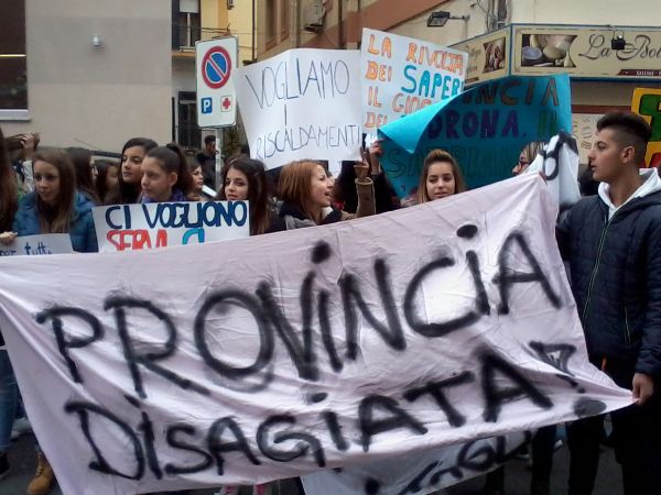 Le Istituzioni addossano la colpa di tutto ciò ai continui tagli e ai mancati trasferimenti che il Governo Nazionale attua nei confronti degli Enti locali per il rientro della spesa pubblica. Gli studenti non la pensano allo stesso modo: “Tagliate i vostri stipendi e non i fondi per la scuola, affermano, un Paese s’identifica civile e da terzo millennio quando è dotato di un’ottima Istruzione”. La protesta è durata per ore e sarà ripetuta, stando a quanto hanno detto alcuni studenti presenti alla manifestazione, nei prossimi giorni se non ci saranno adeguate risposte a proposito dei servizi. “In queste condizioni – ha dichiarato una studentessa – si corre il rischio di ammalarsi mentre si è a scuola dove, invece, ci si reca per studiare”. Nel corso della protesta il Presidente della Provincia, Peppino Vallone, era nel suo ufficio. I ragazzi si aspettavano da parte del Presidente un incontro con una loro delegazione che non c’è stato. Questo ha irrigidito ancora di più la protesta.