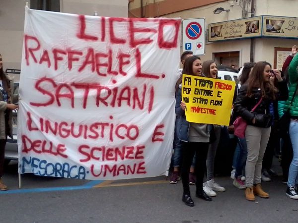 “Vogliamo aule riscaldate per non soffrire il freddo”. Ed ancora: “politici non riscaldate le sedie ma le aule”. Questi alcuni slogan gridati davanti la provincia di Crotone dai ragazzi del Liceo linguistico e delle scienze umane, Raffaele L. Satriano, di Mesoraca. Hanno protestato per ore senza creare alcun disagio alla popolazione e senza effettuare alcun blocco stradale come si era temuto in un primo momento. Non solo il mancato riscaldamento, ma anche il caro biglietto dei pendolari studenti che si devono recare a Crotone dai paesi vicini, la pessima viabilità della rete stradale provinciale, sono gli argomenti che tutti gli studenti del territorio provinciale stanno mettendo in evidenza con continue manifestazioni.