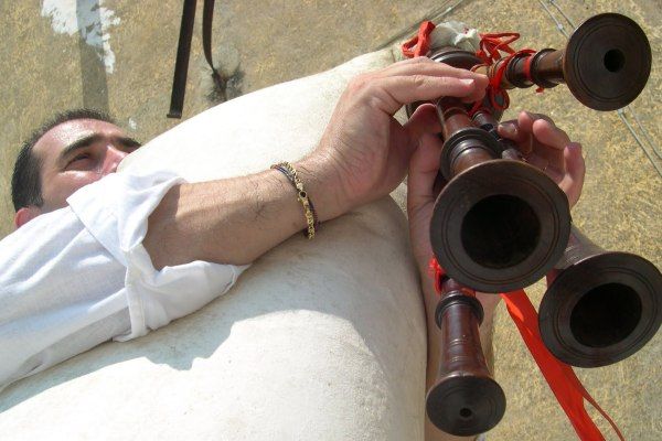 E tante volte, sempre a Serra San Bruno accadeva che, mentre stava suonando lo zampognaro di Brognaturo, gli si affiancassero anche i suonatori ambulanti porta a porta per la Novena , e insieme formavano una bella orchestrina con tanto di mandolino, chitarra, violino. Era davvero bello ascoltare Tu scendi dalle stelle col suono melodioso della zampogna e le note del violino o del flauto, detto anche fischiottu confezionato alla bell’e meglio dai giovani pastori al seguito delle proprie greggi su per la montagna. L’arcaico suono della zampogna ci rinvia all’antica offerta musicale dei pastori – suonatori, attestata da un’ampia iconografia già dal 1500. Mi raccontava lo zampognaro abruzzese, che fino a pochi anni orsono veniva a Crotone, che “il suono delle zampogne, relegato prima sui monti, dove i pastori ricevono la buona novella, simboleggiava il peccato da cui l’Avvento del Cristo avrebbe redento l’umanità. Oggi, per fortuna, la presenza degli zampognari è diventata importante perché chiamati a testimoniare nei tanti convegni il loro passato, la loro storia, le caratteristiche dello strumento. Qualche anno fa a Chieti l’Accademia dei Transumanti degli Abbruzzi ha chiamato a raccolta zampognari da tutta Italia per tre giornate di studio e confronto. Anche a Brognaturo si sono radunati zampognari di tutta la Calabria per rinverdire un po’ di storia ed anche e soprattutto tracciare le linee del futuro per non cancellare ed anzi per inserire in un contesto, se si può dire, di modernità, la zampogna, “la capra che suona” per dirla con le parole di Antonello Ricci e Roberta Tucci, i quali su una loro ricerca hanno fatto ruotare, nel 2002, alcuni incontri di studio tra Crotone e Catanzaro col contributo di critici musicali e antropologi come Giorgio Adamo, Luigi M. Lombardi Satriani, Cesare Pitto e Ottavio Cavalcanti. Più di recente, lo scorso mese di novembre, zampognari da tutta la Calabria, compreso i fratelli Tassone di Serra San Bruno, valenti e apprezzati costruttori di zampogne, si sono radunati in quel di Pizzoni, nel Vibonese. Hanno discusso sul metodo di costruzione della zampogna e sui particolari spartiti musicali. Si tratta, insomma, di scrollarsi di dosso l’immagine oleografica, quella che relega lo strumento pastorale per eccellenza, la zampogna appunto, entro territori della nostalgia e della memoria, per rintracciare le traiettorie di una storia etno-organologica antica; osservare, sul lungo periodo, la trama dialettica fra scrittura e oralità, tradizione colta e popolare; e, ancora interrogarsi sulle nuove identità che l’arcaico strumento assume entro le coordinate del presente.