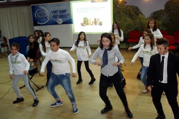 Durante la “trasmissione” venivano proiettati dei video, curati personalmente dalla dott.ssa Mazzitello Valentina, che spiegava l’importanza di una sana alimentazione, a partire dalla prima colazione sino alla cena, abbinata ad un regolare esercizio fisico. Oltre ai video, il corpo di coro e ballo, composto da Calabretta Martina, Certomà Michele, Liritano Valeria, Librandi Antonio Pio, Malena Sara, Francesco Pirito, Marincola Rebecca, Marino Maria, Morrone Eva, Murano Giovanni, Paduraru Adnana Gabriela, Paduraru Eduard Ionut, Parise Maria Sole, Parrilla Maria, Scorpiniti Marta Lucia, Siciliani Maria Carla, Sinopoli Eliana, Martino Davide e Blefari Gessica, hanno illustrato cantando e ballando lo scopo del progetto sulle note delle canzoni “Un ragazzo inadeguato”, “Fatti mandare dalla mamma” e “Viva la pappa col pomodoro”. Il progetto si è concluso con il discorso finale del Dirigente scolastico Prof. Giuseppe Barberio che ha fatto notare come la nostra dieta si sia evoluta nel tempo, passando da una dieta molto calorica, a cui i nostri padri erano abituati, anche per i lavori pesanti che svolgevano nel passato, ad una dieta più soft anche grazie alla nascita di nuove figure professionali, come il nutrizionista e all’esigenza dei giovani di apparire ed essere “più sani e più belli”. Il dirigente, ha ricordato inoltre che quest’anno il progetto si è concluso in concomitanza per la raccolta di beneficenza a favore di Telethon a cui l’Istituto “Filottete” prende parte ormai da oltre sei anni ed ha voluto ringraziare i presenti, i genitori e tutti i ragazzi, nonche’ le prof.sse che hanno curato il progetto stesso. Un ringraziamento particolare è andato infine ad Aloisio Chiara Ludovica, in qualità di assistente audio e alla cantante Veronica Parrilla in qualità di vocal coach dei ragazzi.
