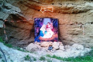 Da una grotta naturale ai piedi del Cozzo Leone in zona Arenacchio, spunta la raffigurazione della natività, che di sera si illumina in tutto il suo splendore. La gente da lontano vede questa grotta illuminata e si avvicina per osservarla imbattendosi in una magica atmosfera natalizia ai piedi della collina greca. Ad ornare la grotta, ad illuminarla ed arredarla dell’effige natalizia la famiglia Fiore-Rizzo che abita nei pressi della grotta naturale la quale ha pensato per gratificare il santo Natale e per devozione, di rappresentarla in una nicchia in modo che tutti potessero osservarla. L’intera area ha assunto una piacevole scenografia natalizia dove i cittadini si fermano spesso nelle vicinanze della grotta per osservarla. Sarebbe interessante che tutta l’area ai piedi del colle in questo particolare periodo diventasse un presepe naturale utilizzando le aree della roccia arenaria scavata qua e là a formare grotte ed insenature che si prestano bene ad essere utilizzata come scenografia naturale per il presepe.