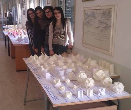 E’ un invito a visitare questo regno poliedrico, a godere della bellezza delle sue forme e a scoprire sorprendenti applicazioni e manifestazioni di questi solidi tridimensionali. I poliedri prosegue Magli- hanno sempre attratto i geometri, ma anche cristallografi e architetti, pittori e scultori, produttori di imballaggi e gioiellieri e compaiono nelle forme geometriche che ci circondano. Magari abitate in uno di essi. Il primo obiettivo della mostra è quello di introdurre il visitatore nei luoghi più caratteristici del mondo dei poliedri ed appassionarsene. La mostra comincia con la famiglia più nobile tra i solidi: i poliedri regolari. Questi cinque corpi, noti anche come solidi platonici, vantano una particolare genesi oltre che leggende e misticismi che li hanno elevati alla categoria di figure geometriche di grande bellezza.Segue tutta la corte che ruota intorno ai sovrani regolari. Sono famiglie che comprendono da semplici piramidi ad altezzosi prismi, fino a sofisticati poliedri stellati, passando attraverso poliedri composti e tutti i 92 solidi di Johnson. Nelle parole di H. S. M. Coxeter, conclude il docente Magli: “La principale ragione per studiare i poliedri regolari è ancora la stessa che al tempo dei Pitagorici, cioè che le loro forme simmetriche interessano il nostro senso artistico e tecnologico”. Davvero una originale ed interessante mostra, un modo per avvicinare i ragazzi alla matematica con semplicità e tanta curiosità.