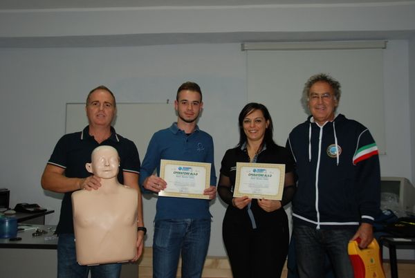Ai partecipanti è stata così insegnata, utilizzando appositi manichini, la tecnica di Rianimazione Cardio-Polmonare per affrontare una situazione d’emergenza, utilizzando il Defibrillatore Semiautomatico Esterno (AED) su una persona adulta priva di respiro o di battito cardiaco in attesa dell’arrivo del Servizio Medico d’Emergenza 118, secondo quanto previsto dalle raccomandazioni ILCOR 2010. Il personale partecipante ha riscontrato notevole interesse dimostrando piena partecipazione. Al termine delle prove di valutazione finali, i partecipanti hanno ricevuto un attestato di abilitazione Operatore BLS-D e successivamente riceveranno dalla sede nazionale e il Tesserino di Operatore. Ricordiamo che le Associazioni Sportive sono tenute a mettersi in regola con quanto stabilito dal Decreto Balduzzi, per i Maestri, gli Istruttori e gli Allenatori di tutte le discipline sportive, avranno l’obbligo di seguire l’apposito corso per l’utilizzo dei defibrillatori. Il 26 Aprile 2013 il Ministro della Salute Renato Balduzzi aveva infatti firmato il Decreto Ministeriale “Disciplina della Certificazione dell’attività Sportiva e Linee Guida sulla dotazione e l’utilizzo dei Defibrillatori Semiautomatici DAE”, previsto dall’Art. 7 comma 11 del Decreto Salute e Sviluppo del 2012. Il Corso BLSD è un vero strumento Salvavita in caso di arresto cardiaco. La cronaca di questi giorni ci ricorda che l’arresto cardiaco non è un evento poi così raro, anche in soggetti giovani, sportivi ed in apparente buona salute. Le statistiche parlano di 1-1,5 casi ogni 1000 abitanti per anno.