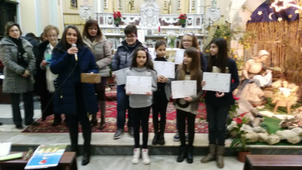I sei ragazzi, Maria Coppola, Dennis Esposito, Immacolata Greco, Lara Lamotta, Giusy Scarpelli e Luana Sestito, tutti compagni di classe e che avevano presentato ognuno un tema sulla tematica proposta dal concorso, hanno ricevuto l’attestato di partecipazione domenica 11 gennaio scorso, nel corso della manifestazione conclusiva, svoltasi in un’affollatissima Chiesa dell’Immacolata, a Crotone.