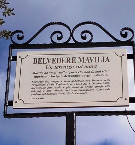 Detto fatto, la targa è ritornata al suo posto, era stata tolta dalla commissione straordinaria alla fine dei lavori su piazzale Mavilia. La targa era stata commissionata dall’amministrazione Caruso come segno del loro operato e per avere reso possibile la realizzazione della nuova piazzetta del belvedere Mavilia dopo che con decreto regionale la protezione civile nel 2007 ne aveva ordinato l’abbattimento poiché era pericolante. Si può leggere sulla targa:”Belvedere Mavilia- un terrazzo sul mare”; la porta medievale che non fu mai-vile con il suo popolo durante le incursioni saraceni. Sono soddisfatto ha riferito il primo cittadino- che le opere da noi programmate sono già in dirittura d’arrivo come questa, altre invece sono quasi al termine.