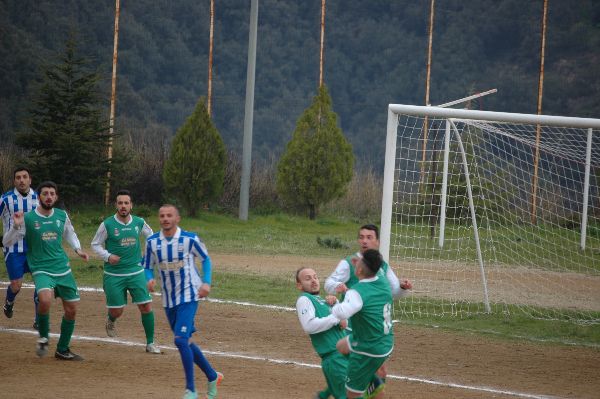 DSC_0350Una partita bella e combattuta quella tra gli arbereshe e lo Steccato. Partono bene gli ospiti, che dopo appena 2′ passano in vantaggio con Trapasso che finalizza al meglio una bella ripartenza dei suoi compagni. Gli undici di casa non si scompongono e al 10′ pareggiano: Iocca si procura un rigore che Vitale trasforma. I ventidue in campo, si sono affrontati a viso aperto, mostrando sprazi di bel gioco. A riposo si va sull’1 a 1. I secondi quarantacinque minuti di gioco, si aprono, con gli undici dello Steccato in avanti: Trapasso gira a volo un bel DSC_0357cross ma la palla termina di poco a lato. Le replica del Carfizzi non si fa attenere: azione in contropiede Monaco-Caputo F.-Iocca, ma quest’ultimo spreca da buona posizione. Passano 10′ e lo Steccato si riporta in vantaggio con Falcone F., che approfitta di una distrazione della difesa e batte Viviani; rete che ha fatto scattare le proteste dei giocatori arbershe per una spinta ai danni del terzino sinistro Scarpino. Il Carfizzi, non ci sta a perdere e, si proietta in avanti alla ricerca della rete del pareggio che però non arriva. Per gli albanofoni una sconfitta immeritata, per i cutresi tre punti importantissimi che fotificano la classifica.