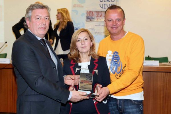 Premi Affidato per 'Ciro vive' (1)Anche il maestro orafo Michele Affidato ha dato il suo contributo artistico alla presentazione del libro “Ciro Vive”, edito dalla casa editrice Graus, scritto dalla giornalista Rai di “Porta a Porta” Vittoriana Abate per testimoniare la storia di Ciro Esposito, il tifoso napoletano che lo scorso 3 maggio perse la vita in occasione della finale di Coppa Italia tra Napoli e Fiorentina. Alla presentazione, tenutasi mercoledì 1 aprile nella sala conferenze dello Stadio Olimpico, sono intervenuti, oltre all’autrice, il Presidente del Coni, Giovanni Malagò; il Sindaco di Napoli, Luigi de Magistris, in collegamento telefonico da Napoli; il vicepresidente della Camera, Luigi Di Maio; il Sottosegretario alla Difesa, Gioacchino Alfano, il Tenente Colonnello Walter Borghino, il Professor Massimo Antonelli, Direttore di Anestesiologia e Rianimazione dell’Ospedale Gemelli; il Senatore Vincenzo Cuomo; l’avvocato Cataldo Calabretta, il Dott Alessandro Iovino, Nicola Lombardo, Responsabile della Comunicazione SSC Napoli; il cantante Gigi D’Alessio, oltre alla mamma di Ciro Esposito, Antonella Leardi, e l’editore Pietro Graus.