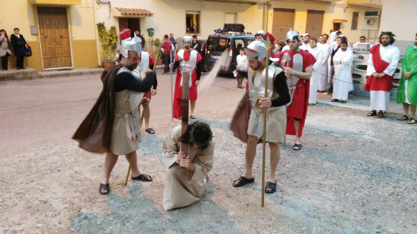 IMG_20150403_192734Sotto l’attenta regia degli organizzatori, dopo le celebrazioni iniziate alle 16,00 è andata in scena l’Ultima Cena tra Gesù (interpretato per la quarta volta da Antonio Capalbo) ed i suoi Apostoli, Giuda Iscariota (Francesco Ioverno), Giovanni (Antonio Labonia), Simone detto Pietro (Rocco Santoro), Giacomo figlio di Zebedeo (Andrea Marchetti), Andrea (Salvatore Astorino), Filippo (Damiano Mancini), Bartolomeo (Gennaro Grillo), Matteo (Carmine Basile), Tommaso (Bruno Serafini), Giacomo Figlio di Alfeo (Dionisio Gentile), Taddeo (Giuseppe De Franco) e Simone il Cananeo (Francesco Forciniti). Poi, nel giardino adiacente la Chiesa, i momenti con Gesù nell’orto degli ulivi, da dove, arrestato grazie al tradimento di Giuda, viene portato al cospetto di Caifa (Nicodemo Bruno) e dei Sacerdoti (impersonati da Domenico Serafini, Francesco Vaglica, Giuseppe Sicilia, Francesco lappanese e Francesco Quercia). Da questo momento la Via Crucis prenderà vita per le vie del paese, a cominciare dall’incontro del Cristo con una serva (Denise Nigro), andato in scena in Via Picasso, e quindi la Ia Stazione, in via Carducci, con l’incontro con Ponzio Pilato (Giovanni Librandi), dopo essere stato consegnato ai soldati (Felice Tursi, Francesco Raiani, Amedeo Lappanese e Saverio Bruno), per una sentenza di condanna a morte che segnerà sicuramente la storia del cristianesimo.